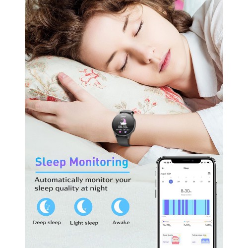 • гЂђFitness TrackingгЂ‘The fit watches for women can track your steps, walking distance and calories burned throughout the day. You can set a step goal. The watch also has 8 exercise modes to track your various exercise data and view the results of each exercise.