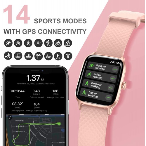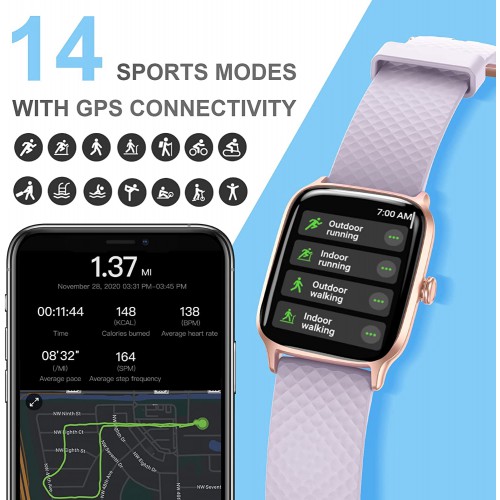 • 14 Sport Modes with Connected GPS: Our smart watch supports 14 sports modes such as running, walking, bicycle and more. You can record all-day fitness data including steps, miles walked, calories burned and can connecting your smartphone GPS to your device to track all your workout routes and distance travelled during exercise.