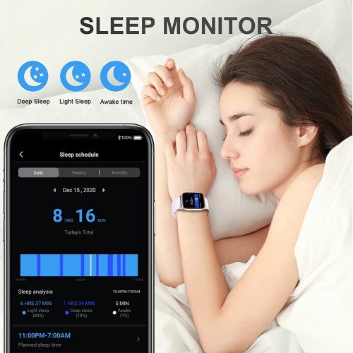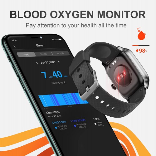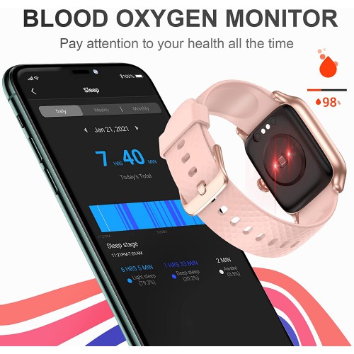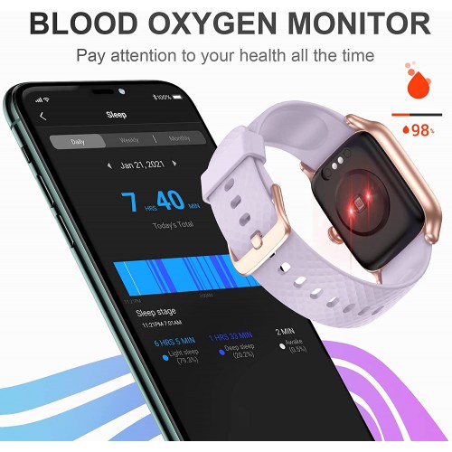 • Smart Health Assistant: The smart watch can Monitor your heart rate in real time via our app, and manually detect your (SpO2) via our watch. It can also auto-track your sleep, and Smart Health Assistant: The smart watch can Monitor your heart rate in real time via our app, and manually detect your (SpO2) via our watch. It can also auto-track your sleep, and analyze your sleep quality(deep sleep, light sleep and wake up time) to help you develop a healthier lifestyle.