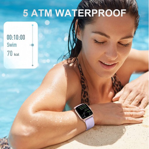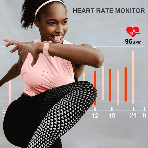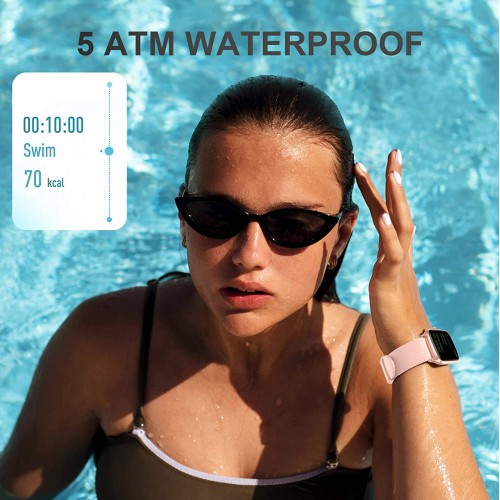 Y&L Smart Watch, Fitness Tracker with Heart Rate Monitor, Sleep Monitor, 5ATM Waterproof Smartwatch Compatible with iPhone and Android Phones for Women Men, Pink